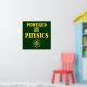 Powered By Physics - pochoir jaune lettrage et graphisme atome avec un arrière - plan vert foncé.