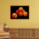 Cette affiche présente une composition très simple de six belles pommes rouges et jaunes brillantes contre un arrière - plan noir.