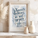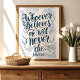 Inspirer la foi et l'espoir avec cette élégante impression d'art mettant en vedette le puissant verset de Jean 11:26. La citation superbement lettrée dans les tons bleu et or, ornée de délicats accents floraux, crée un design serein et stimulant. Parfait pour ajouter une touche d'inspiration spirituelle à votre maison, bureau ou espace de prière.