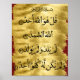 Poster du Coran Surah Ikhlaas en couleur or et noir