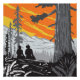 Illustration de randonneurs assis sur leur bûche dans le Boy Scout Tree Trail à Jedediah Smith Redwoods State Park à l'est de Crescent City en Californie fait dans le style WPA de coupe de bois rétro.