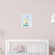 avec un joli dinosaure souriant, des joues roses et RAWR écrites sur le ventre. 3 étoiles joyeuses et colorées au-dessus de sa tête. Placé sur un motif bleu clair et blanc de pois et rayures. Ajout symbolique à la chambre ou à la crèche d'un enfant.
