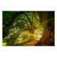 La lumière du soleil filtre à travers les branches d'un grand arbre feuillu, créant une atmosphère sereine et chaleureuse. L'écorce est robuste et texturée, ajoutant à la beauté naturelle de la scène.