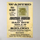 Poster de fête d'anniversaire Recherché Wild West. Un cool entièrement personnalisable affiche de fête de style occidental avec texte entièrement personnalisable et télécharger votre photo de cowboy. Modifier les textes; En-tête 1 : "Recherché", En-tête 2 : "Pour un grand parti", Date du parti : "Le 12 novembre 13:00 - 16:00.", Nom : "Jonathan Johnson", Texte 1 : "- Connaître aussi comme -", Alias : "Bad Boy Billy", Texte 2 : "Pas de récompense de", Texte 3 : "$25,000", Texte 4 : "Mais beaucoup de boissons gratuites, de nourriture, de bonbons etc.", Texte 5 : "Et vous êtes invité!" et Adresse, Numéro de téléphone et E-mail : "À la maison familiale Johnson - 1234 Grand Canyon Road Phoenix AZ - Téléphone n° 000 12345678 - youremail@address.here". Ce poster super cool recherché est entièrement personnalisable, ajoutez vos textes et images ! Une affiche unique pour une fête à thème occidentale, une fête de célibataire ou une fête d'anniversaire!
