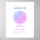 Cette affiche a l'image d'un cercle de figues en rose, bleu et violet sur un arrière - plan blanc. Sous le figuier se trouvent deux mots : "Foi" et "Espoir". Le texte central au-dessus et au-dessous du filigree dit "Cherchez vers le haut" et "quand la vie vous descend". Customisez cette affiche ou achetez-la comme prévu.