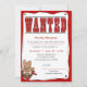 Poster Recherché avec un hors-la-loi dans le coin et un invitation à une fête d'anniversaire. Customisez les invitations à votre fête d'anniversaire avec vos détails de fête.