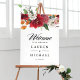Bienvenue aux invités à votre événement avec ce panneau d'accueil mariage personnalisable. Il dispose d'une guirlande fleurie d'amaryllis, de roses, de chrysanthèmes et de ranunculus. Personnalisez ce décor botanique d'accueil en ajoutant vos détails. Cette enseigne à fleurs mariage est parfaite pour les mariages d'automne et d'hiver.