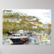Un bateau de pêche local, avec des défenses rouges sur son côté du port, se trouve à son amarrage à l'intérieur du port de Mevagissey. De l'aquarelle originale de Christine. (Plusieurs des peintures Mevagissey originales de Christine sont en vente au Cofro Cornish Art Coffee House, 14 Fore St., Mevagissey)