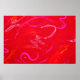 Abstract design. Vivid red textured background with pink and orange wavy squiggles and s-shapes. Donc has Some grunge looking random painted scrapes, scratches and brush strokes.