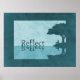 Dessin texturé vert-bleu représentant la silhouette d'un homme assis sous un arbre près d'un étang qui contemple. Le mot "Reflet" repose sur la surface du lac, le texte et les ombres reflétés dans l'eau parfaitement calme.