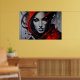 Une œuvre d'art saisissante ! Ce portrait de femme combine un réalisme facial avec des éclaboussures de peinture rouge et noire explosives. Des yeux pénétrants et des traits audacieux créent une atmosphère mystérieuse et élégante. Parfait pour la décoration haut de gamme, les studios et les amateurs d'art urbain et contemporain.
