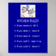 Ensemble de cinq règles de cuisine en lettres blanches sur arrière - plan bleu cobalt avec une image vintage de tasse stylisée n'soucoupe et bol à sucre