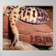 Les lézards trouvent les moyens les plus fous de se mettre à l'aise ! Ce gecko léopard paresseux dort avec des membres mous, une jambe pendante jusqu'au bord de son "lit" — une position de sieste perfectionnée seulement par les reptiles et les humains subadultes! Une grande affiche photo montre la jambe et la queue d'un léopard ravissant, avec le mot "Relax" imprimé sur la pierre en dessous de lui.