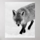 Une photo en noir et blanc d'un renard rôti dans la neige.