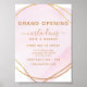 Affiche de réouverture du salon Rose Pâle Aquarelle Cercle Doré. Élégante aquarelle rose pâle avec cercle doré géométrique de style calligraphie manuscrite professionnelle. Parfait pour les artistes maquilleurs, les coiffeurs, les cosmétologues, et plus encore !