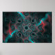 Une image fractale verte et rouge, en réseau, sur un arrière - plan sombre. Un circuit imprimé bio.