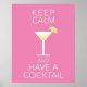 texte : "Gardez le calme et prenez un cocktail" avec un verre à cocktail rétro et une tranche de citron.