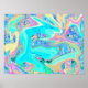 Poster Retro Aqua Blue Liquid Art sur les Hydrangeas Abst