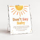 Faites de votre événement spécial avec ce Baby shower Retro Sun avec notre joli et mignon imprimé Don't Say Baby Sign avec adorable Here Comes the Son thème Baby shower. Téléchargez, personnalisez et créez des souvenirs durables avec cette touche parfaite pour votre fête joyeuse ! BS640