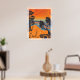 Cette affiche présente un paysage forestier retro au coucher du soleil avec des silhouettes d'arbres audacieuses et des tonalités orange et bleue vives. Le style art abstrait mêle le boho moderne et le vintage, ce qui en fait une pièce frappante pour la décoration de maison, de bureau ou de studio. Parfait pour ajouter de la couleur et de la créativité à n'importe quel mur, cette oeuvre d'inspiration nature est idéale pour les amateurs d'art et ceux qui apprécient des tirages uniques et accrocheurs.