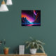 Cette oeuvre d'art à couper le souffle capture la sérénité et la beauté d'un paysage de montagne stylisé étranger. Les couleurs éthérées et le style synthwave lui confèrent une qualité onirique, ce qui en fait une pièce paisible et fascinante.