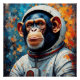 Un chimpanzé habillé en astronaute regarde pensivement l'espace.