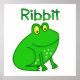 Les amateurs de grenouilles apprécieront cette jolie grenouille et le mot Ribbit.