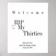 This is a modern, 40th birthday, RIP 30s party Welcome party sign poster. It is in minimal black and white with stylish typography. Perfect for a cool and fun, Halloween themed, 40th birthday party and ideal to welcome your guests. To personalize, simply use the personalize this button to add your name and celebration date, here you can also change the rest of the text if you want to. Check out the design editing tool to change the color or font. For help with personalization, matching products, or for a custom design, contact me via email: ursuladawnmoon@gmail.com