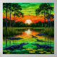 Un coucher de soleil tropical serein avec des alligators reposant au bord d'une rivière entourée d'une végétation luxuriante, de nuages expressifs et de couleurs chaudes qui transmettent la tranquillité et la beauté sauvage de la nature.