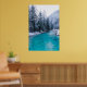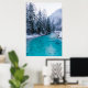 Photo de paysage d'une rivière magique bleue dans une forêt d'hiver enneigée.