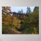 Belle matinée d'automne le long de la rivière Tualatin à Tualatin, Oregon. De jolies feuilles d'automne colorées se reflétant dans les eaux calmes, avec un vieux pont ferroviaire qui s'étend au-dessus de la rivière. Photo prise en octobre 2017.