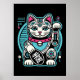Poster Robot Cyberpunk Maneki Neko Chat Lucky, Argent
