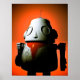 Robot de jouet vintage 3d découpé Vintage avec un arrière - plan rouge arrière puissant.