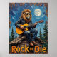 Ce tableau captivant présente un lion, avec lunettes de soleil et veste en cuir, profondément immergé dans une confiture de "roche nocturne" sur une guitare électrique. Il est équilibré sur un toit en bois, avec une pleine lune brillante et des pins foncés créant un décor de nuit spectaculaire. La brosse vibrante et texturée crée une atmosphère vivante et exaltante, qui transmet parfaitement l'ambiance "Rock or Die" de cette performance unique.