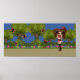 Darby the Roller Derby Fairy est une manga de style shoujo et elle porte un dessus rouge et une jupe avec des coeurs sur ses genoux, des diamants rouges et noirs sur ses chaussettes, et des flammes sur ses patins. Elle a des ailes noires et rouges et de grandes queues de cochon bouclés. Elle patine près des bois devant les champignons aux couleurs magnifiques. Illustration de KLeighE de Hinterland Harmony Art and Illustrations.