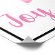 Poster présenté avec une jolie photo de fleur de dahlia rose. Texte de "Joy peace Love" en bas. Customisez cet objet ou achetez tel quel. Image stock www.freepik.com