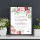 Symbole d'accueil mariage maison de ferme moderne et personnalisée avec de beaux coins rose roux et roses et rouges bordeaux avec feuillage vert naturel et deux petits coeurs rouges foncés. +++++++++++++++++++ Facile à customiser avec les noms de mariée et de mariée, date et lieu. +++++++++++++++++++ Convient pour les cérémonies et réceptions mariages du jardin extérieur du printemps ou de l'été.