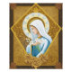 Ce design s'inspire d'une belle cale peinte et brodée sur un vêtement catholique porté par des masses de la Sainte Mère. Elle tient une tige de lys dans ses mains, un bouquet de roses la encadre, un halo couronne sa tête.