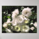 Cette affiche présente une composition de roses blanches qui a été numériquement rehaussée pour un effet aquarelle. Ce merveilleux rose d'arbustes produit des centaines de petites rosettes d'ivoire pendant la majeure partie de l'été et est pratiquement insouciant.