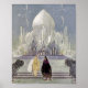 Illustration couleur vintage pour le livre "Vieilles fées françaises". L'illustrateur Virginia Sterrett. Illustration représentant Rosette et le Prince avec château de conte de fées en arrière - plan.
