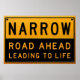 Conception d'un panneau de rue avec les mots "ROUTE ÉTROITE AVANT DE MENER À LA VIE".