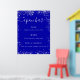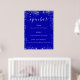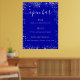 Un arrière - plan bleu royal. Décoré de parties scintillant en faux argent, pétillant. Avec le texte : Ouvre la barre. Personnalisez et ajoutez le menu de votre barre. Texte blanc.