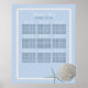 Ce tableau de sièges est parfait pour tout couple qui planifie un mariage élégant à la plage. Le design est composé d'un dollar de sable crémeux et d'une étoile de mer bleu clair avec un arrière - plan bleu ciel. Le design est complété par une bordure de sable délicate. Le design simple et frais peut être personnalisé en fonction de votre événement spécial et sera le plan de table parfait pour toute fête sur la plage, y compris : douches nuptiales, fiançailles, wedding showers, fêtes d'anniversaire et bien plus encore.