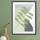 Cette impression géométrique non encadrée présente des feuilles plantes, une arche et des cercles dans les tons vert sauge et gris sur un arrière - plan blanc. Cette impression d'affiche prête à l'emploi s'adapte aux cadres standard qui sont facilement disponibles.