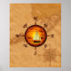 Rose nautique vintage Compass avec peinture numérique d'un voilier et coucher de soleil au centre et carte nautique de style vintage de l'arrière - plan Florida Keys.