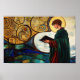 Cette magnifique représentation de Saint Patrick allie un riche symbolisme à un style intemporel et peintre. Habillé de robes vertes profondes et baigné de lumière dorée, le saint patron bien-aimé de l'Irlande se dresse dans la contemplation, tenant les écritures sacrées. L’arrière - plan complexe évoque des éléments de vitraux et d’art celte, représentant la profonde sagesse spirituelle de saint Patrick et sa mission de répandre le christianisme.