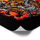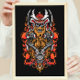 Cette conception est d'un guerrier et dragon du crâne samouraï. Son visage est partiellement obscurci par un casque, entouré par la tête d'un dragon fougueux. Le samouraï tient deux katanas. Il y a du feu qui sort de la bouche des dragons, ce qui donne une atmosphère menaçante.