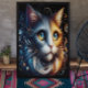 Un tableau fascinant d'un chat aux yeux bleus saisissants, regardant directement le spectateur. La fourrure de chats est dépeinte dans des tons riches, présentant son aspect élégant et royal.
