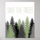 Cette affiche présente un design forestier et contient le message "Sauvez les arbres", ce qui en fait une grande affiche pour le Jour des terres !