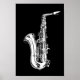 Design avec illustration de saxophone sur arrière - plan noir; design élégant simple d'instrument de musique jazz